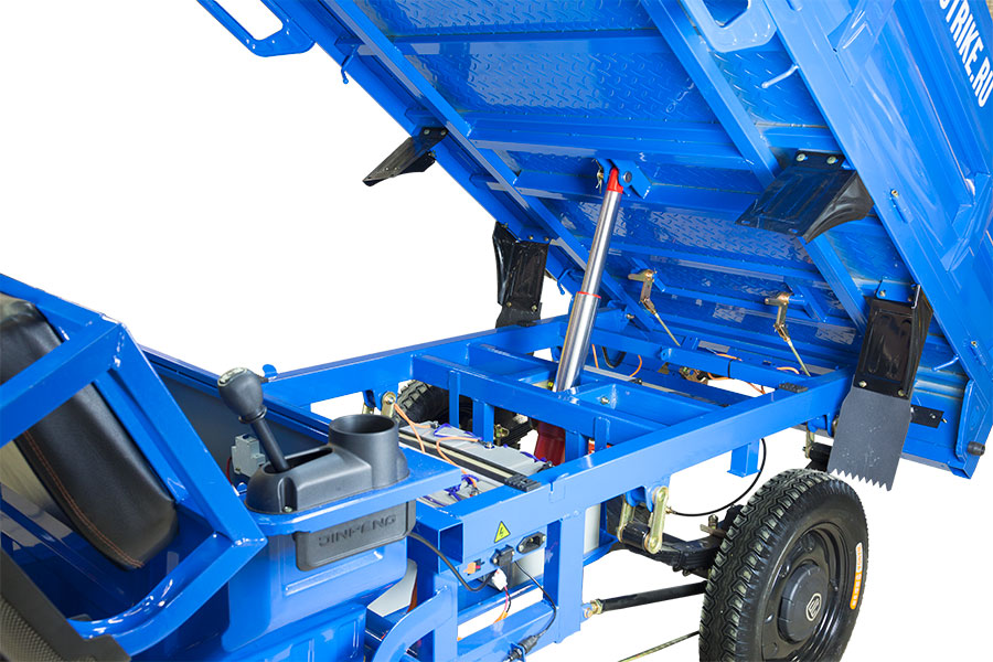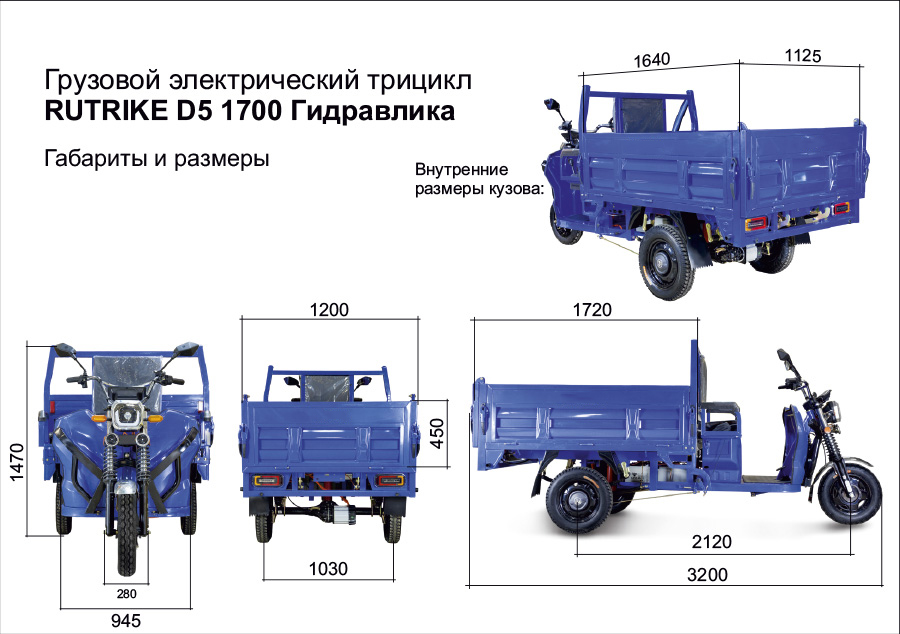 Грузовой электротрицикл Rutrike D5 1700 гидравлика - это мощное и надежное транспортное средство, способное перевозить тяжелые грузы.