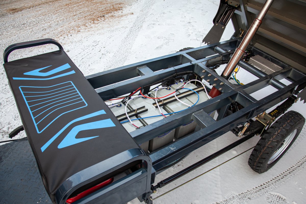 Усиленные борта и увеличенный грузовой отсек рассчитаны на максимальный вес 1200 кг. Обновленный двигатель мощностью 1500 Вт позволяет развивать максимальную скорость до 25 км/час. Производитель оснастил модель фирменным гидравлическим подъемным механизмом, что делает ее еще более функциональной и удобной в использовании.