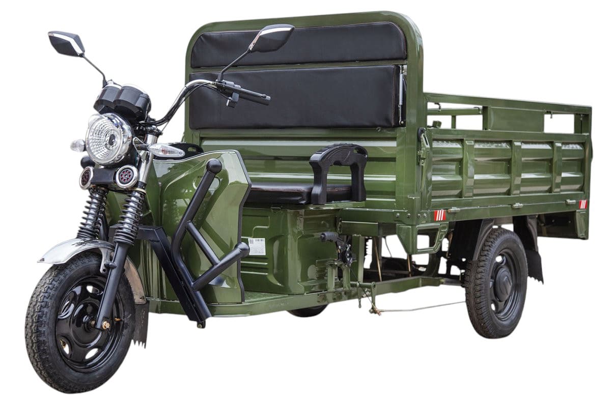 Грузоподъемность модели составляет впечатляющие 1200 кг, а размер грузового отсека 1720×1120×460 мм позволяет транспортировать крупногабаритные грузы. Передняя подвеска оснащена гидравлическими амортизаторами, а задняя — рессорами (7 листов), что гарантирует плавность хода и комфорт при полной загрузке. Сухой вес трицикла составляет всего 250 кг, а колеса размером 3,50-R12 спереди и 4.00-R12 сзади обеспечивают отличное сцепление с дорогой.