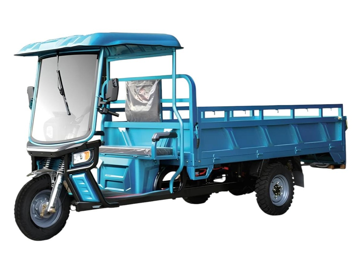 Трицикл оснащён гидравлической вилкой спереди и рессорной подвеской сзади для комфортной езды с тяжёлым грузом. Тормозная система — комбинированная: барабанный тормоз спереди и гидравлический ножной тормоз сзади — обеспечивает надёжное и мощное торможение. Общий вес модели составляет 495 кг. Это прочное, долговечное и производительное решение для логистики, строительства и коммунальных служб, сочетающее высокую грузоподъёмность с экологичностью и экономичностью эксплуатации.