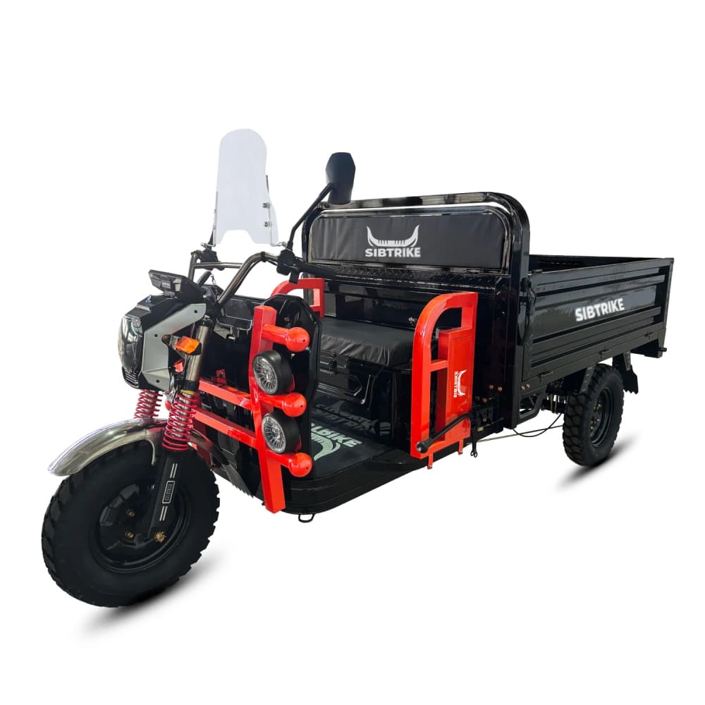 WHITE SIBERIA SIBTRIKE PRO CARGO 3000W — это мощный грузовой электроскутер, разработанный для перевозки тяжёлых грузов в городских и пригородных условиях. Оснащённый двигателем мощностью 3000 Вт и задним приводом, он развивает скорость до 25 км/ч и способен перевозить до 2000 кг — одна из самых высоких нагрузок в классе электротрициклов. Это делает его идеальным решением для доставки, строительства, сельского хозяйства и промышленного применения.