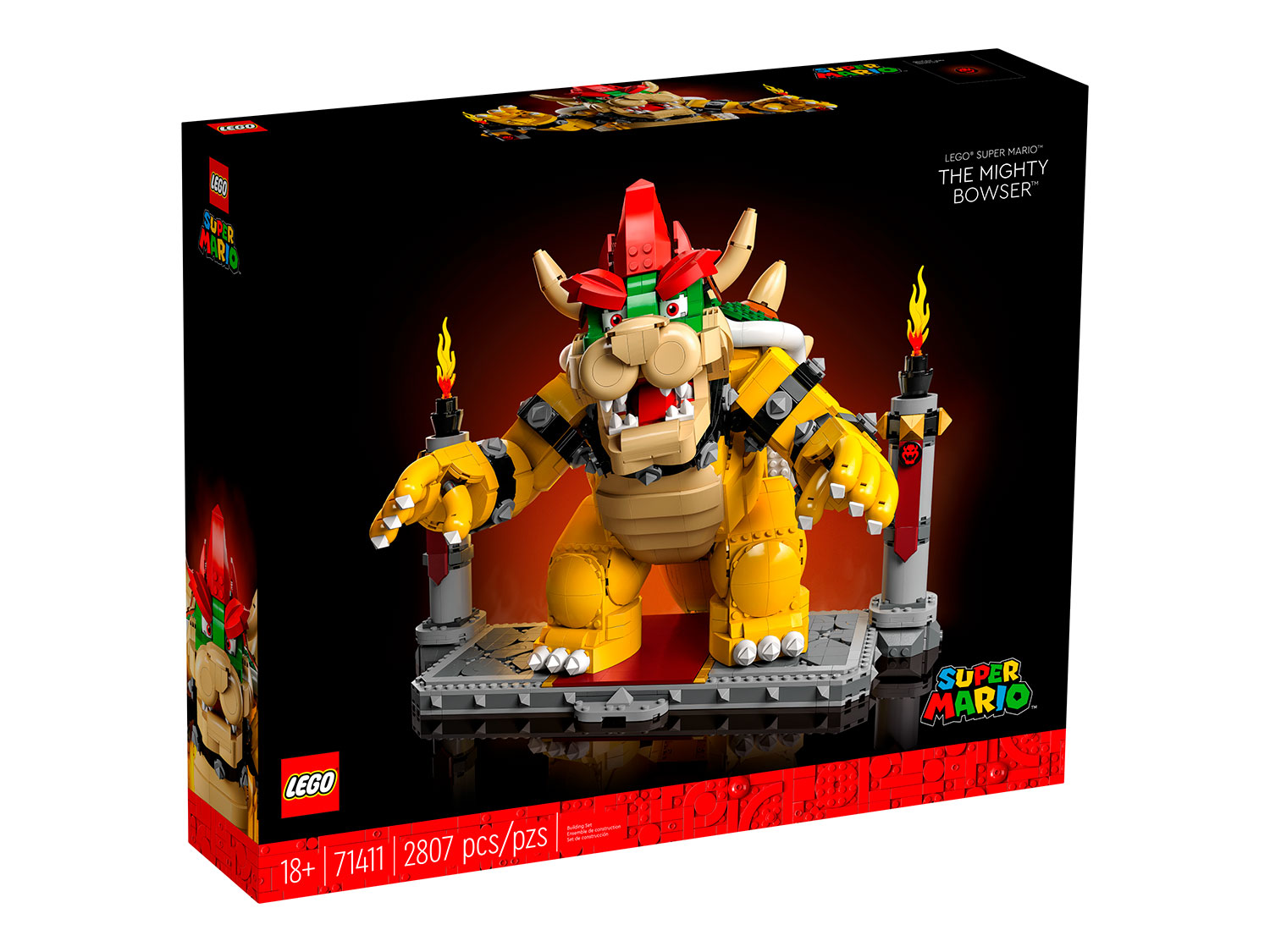 Могучий Боузер™ (71411). Эта фигурка содержит новые элементы LEGO®, не использовавшиеся ранее, такие как шипы на панцире Боузера, а также множество функций, включая механизм для запуска огненных шаров и элементы управления головой злодея. Кстати, его руки и пальцы тоже двигаются!