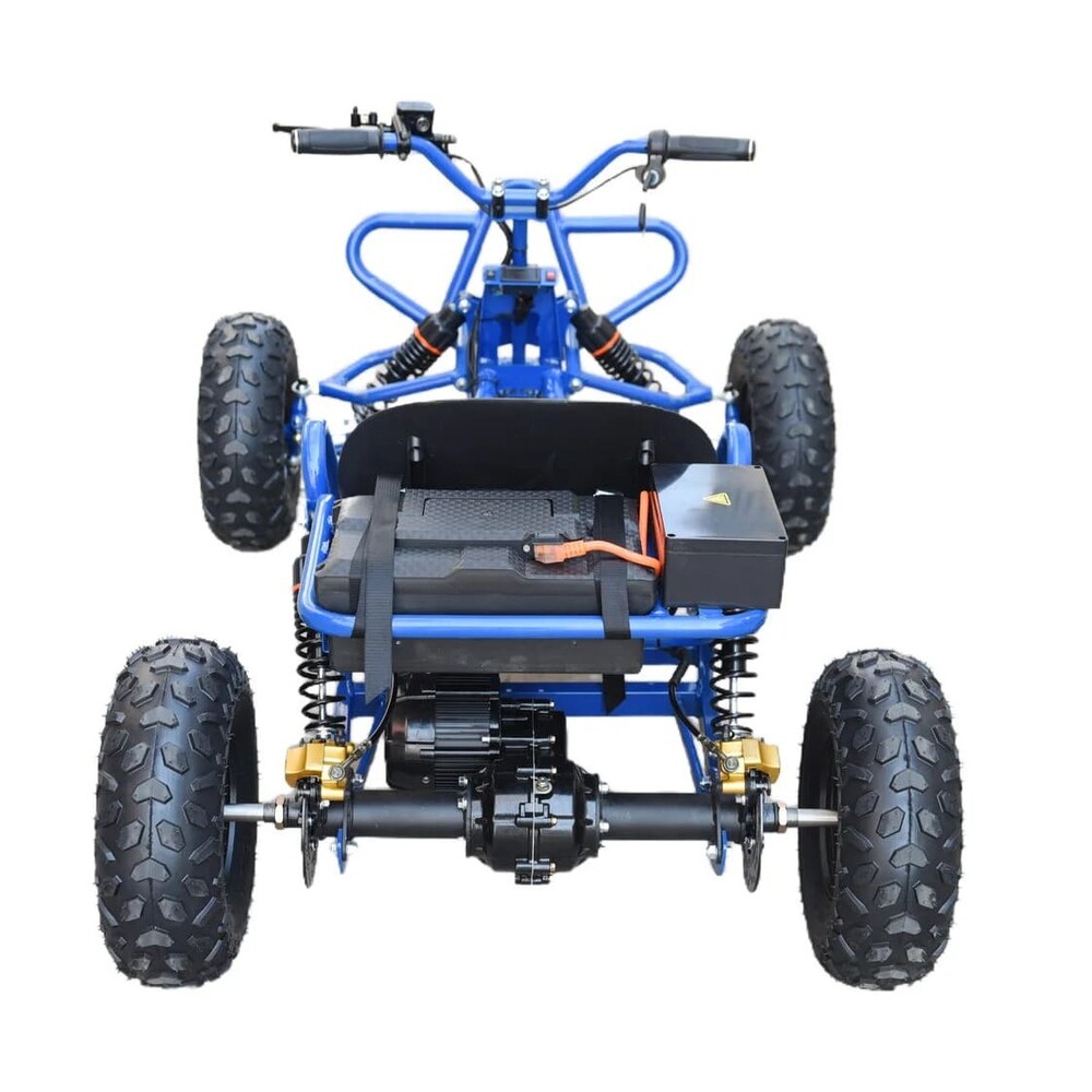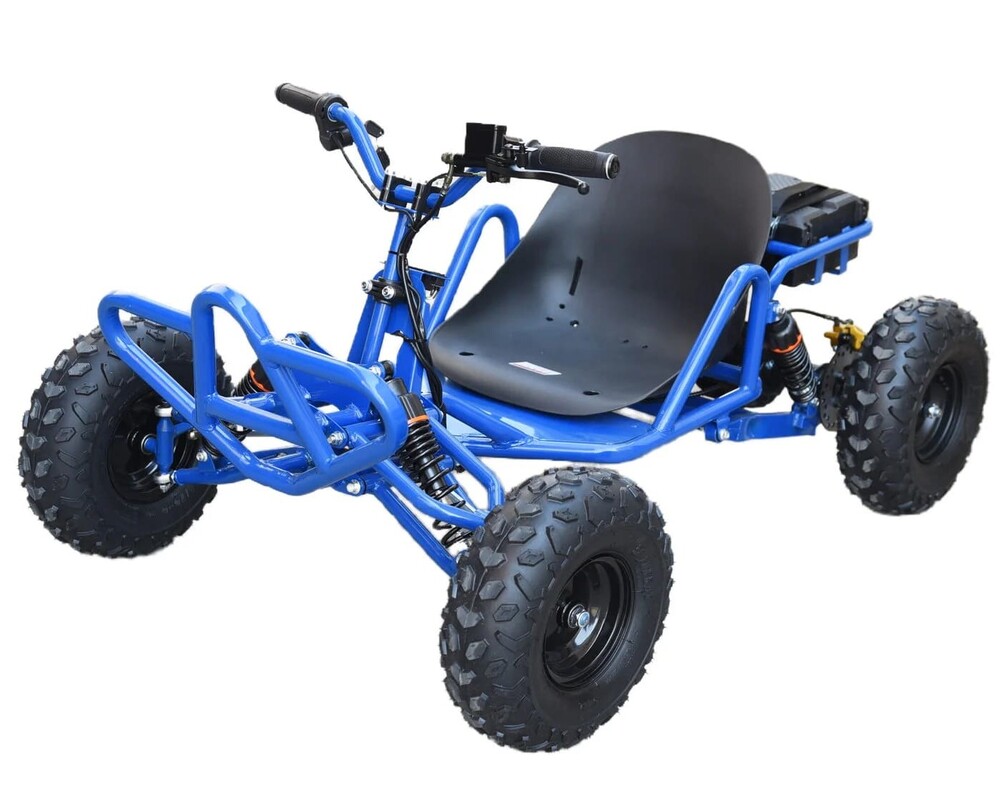 Электрокартинг работает от аккумулятора напряжением 48 В и емкостью 20 А·ч. Используется свинцово-кислотная батарея, которая обеспечивает стабильное питание и достаточную автономность для активного катания. Для безопасного торможения предусмотрен ручной дисковый тормоз на заднее колесо, что позволяет точно контролировать остановку даже на высокой скорости.