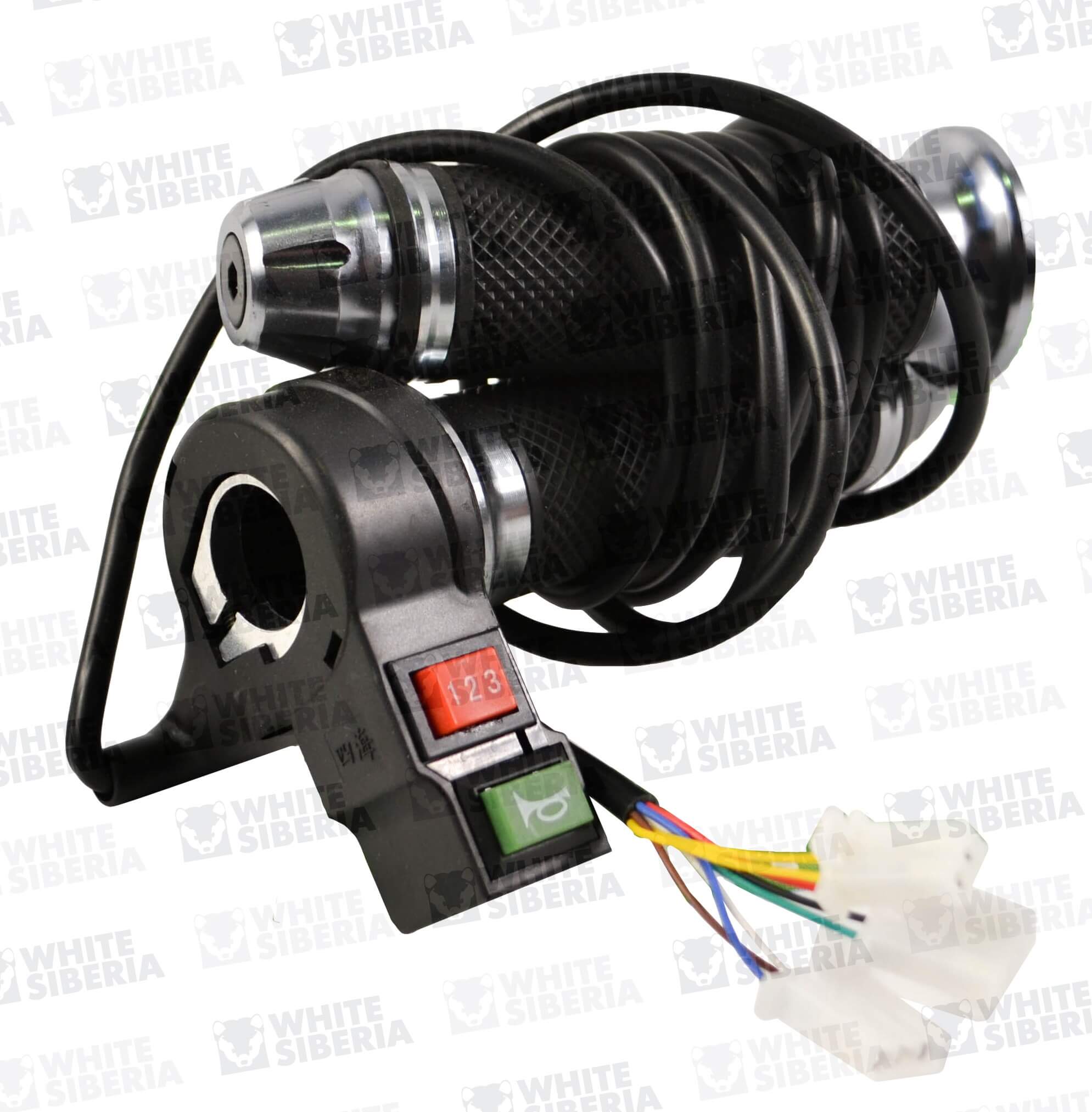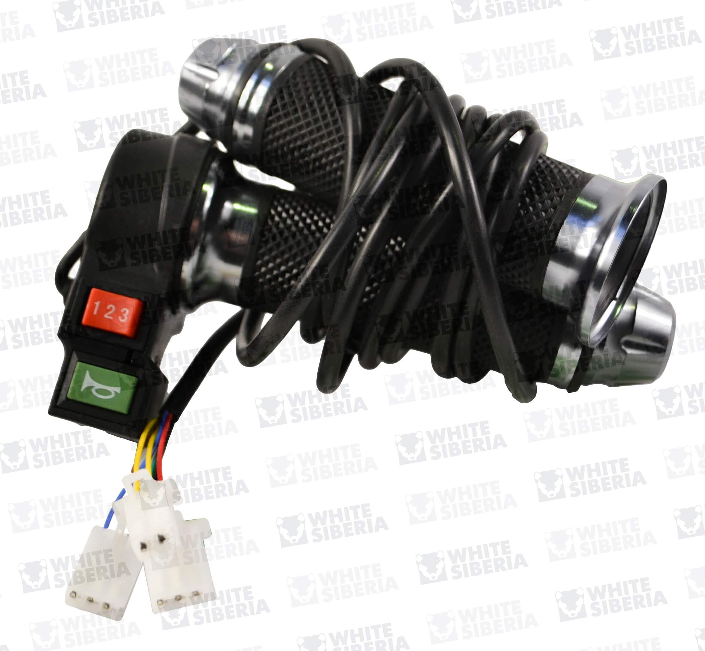 Совместима с большинством Citycoco. Особенность - переключатель скоростей - 3 положения. Также, есть кнопка звукового сигнала. Использование современных материалов и качественных соединений - залог безопасности и уверенности в своём электрическом транспорте! Наша проводка проходит серию заводских испытаний - на короткое замыкание и большим напряжением - поэтому мы уверены в вашей безопасности! В комплекте идёт левая грипса и необходимая проводка, для подключения ручки, ручка газа. Ручки покрыты хромом, зоны хвата прорезинены для большего удобства райдера.