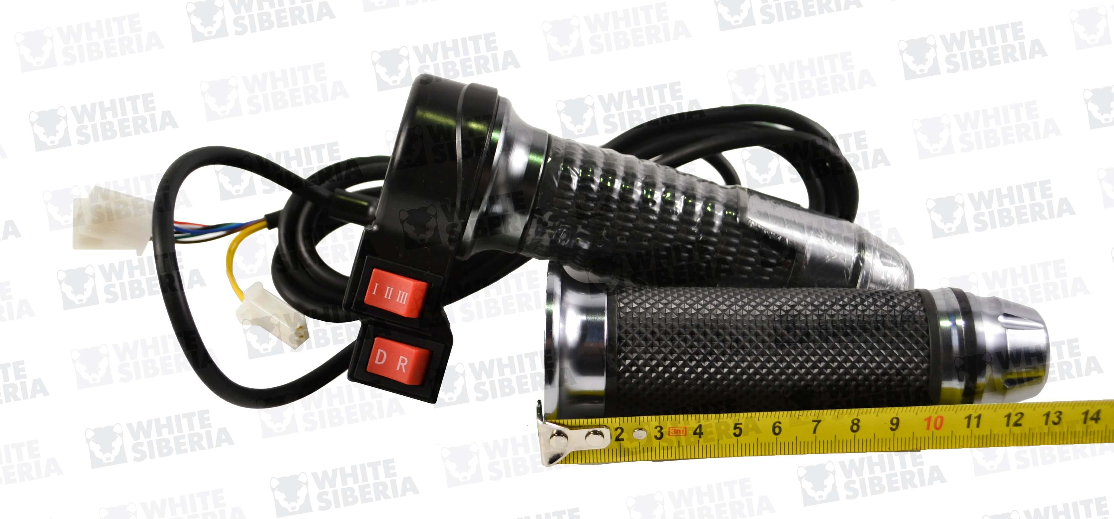 Совместима с трициклами Citycoco. Особенность - переключатель скоростей - 3 положения. Также, есть переключатель переднего/заднего хода. Ещё подходит на модель WHITE SIBERIA 2WD - там этот переключатель будет включать полный привод. Грипсы покрыты хромом для износостойкости и приятного внешнего вида, зона хвата прорезинена, чтобы руки райдера не скользили. Использование современных материалов и качественных соединений - залог безопасности и уверенности в своём электрическом транспорте! Наша проводка проходит серию заводских испытаний - на короткое замыкание и большим напряжением - поэтому мы уверены в вашей безопасности! В комплекте идёт левая грипса и необходимая проводка, для подключения ручки, ручка газа.
